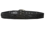 1 1/2" Snap on Antique Silver Studded Cross Strap Leather Jean Belt