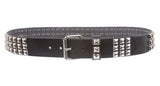 Snap On Three Row Punk Rock Star Metal Silver Studded Full Grain Cowhide Leather Belt