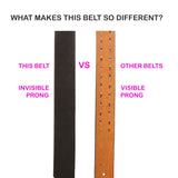 - Hidden prong design for the metal checkerboard studs. The prongs are concealed inside the back of the belt straps, preventing snagging on pants and ensuring a hassle-free experience.
