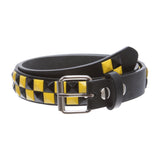 - Silver Star Studded or with colored checkerboard pattern leather belt with snap on, interchangeable roller buckle