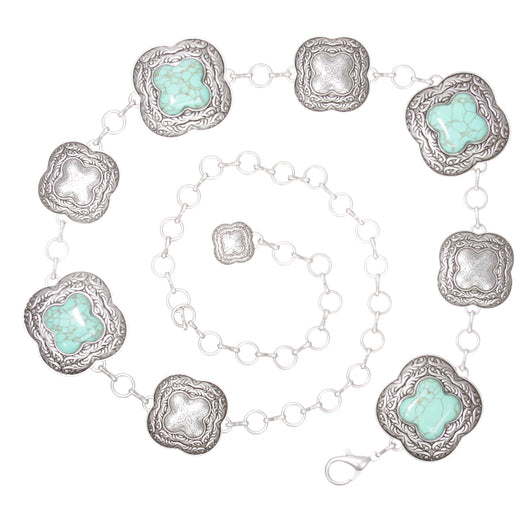 Women's Western Turquoise Blue Stone Square Concho Chain Belt