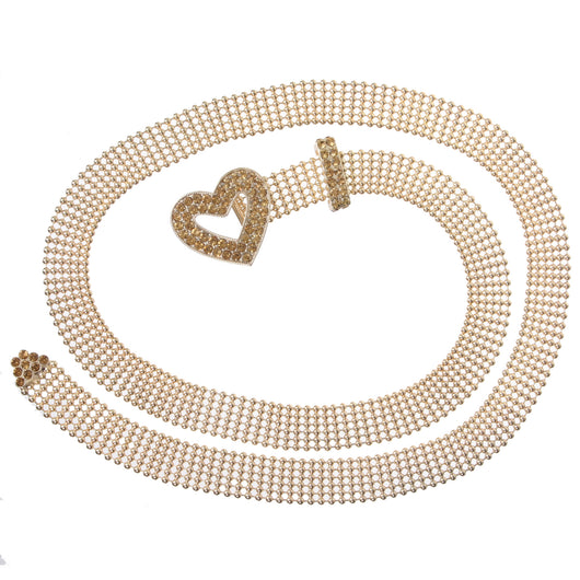 3/4" Rhinestone Open Heart Metal Ball Chain Belt