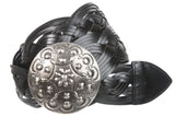2 Inches Wide Leather Braided Disc Buckle Belt