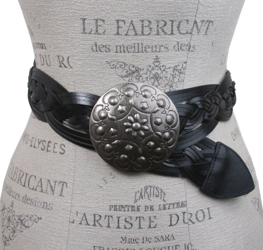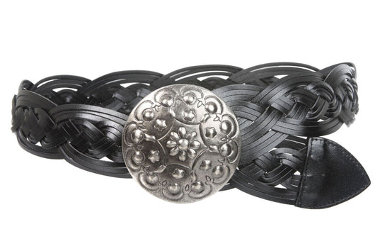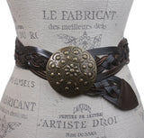 *Description: Braided belt with disc Buckle *Material: Genuine Leather *Width of Belt: 2" *Buckle measurement:3 3/4" in diameter *Size Chart: |Size S/M - 37"| Full Length 37" |Size M/L - 41"| Full Length 41"