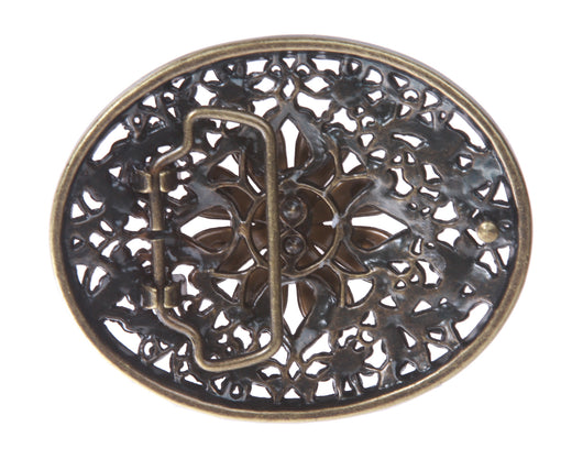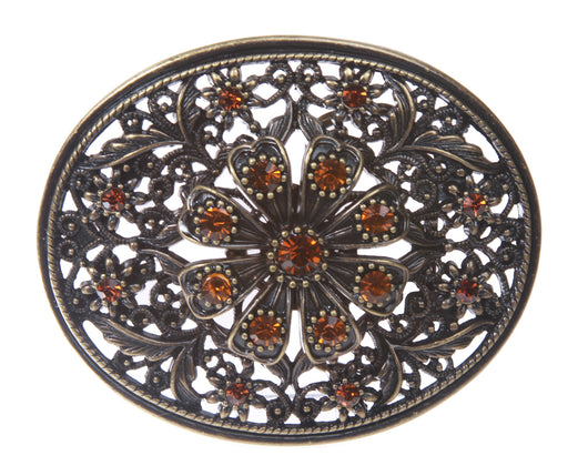 Perforated Oval Topaz Rhinestone Flower Belt Buckle