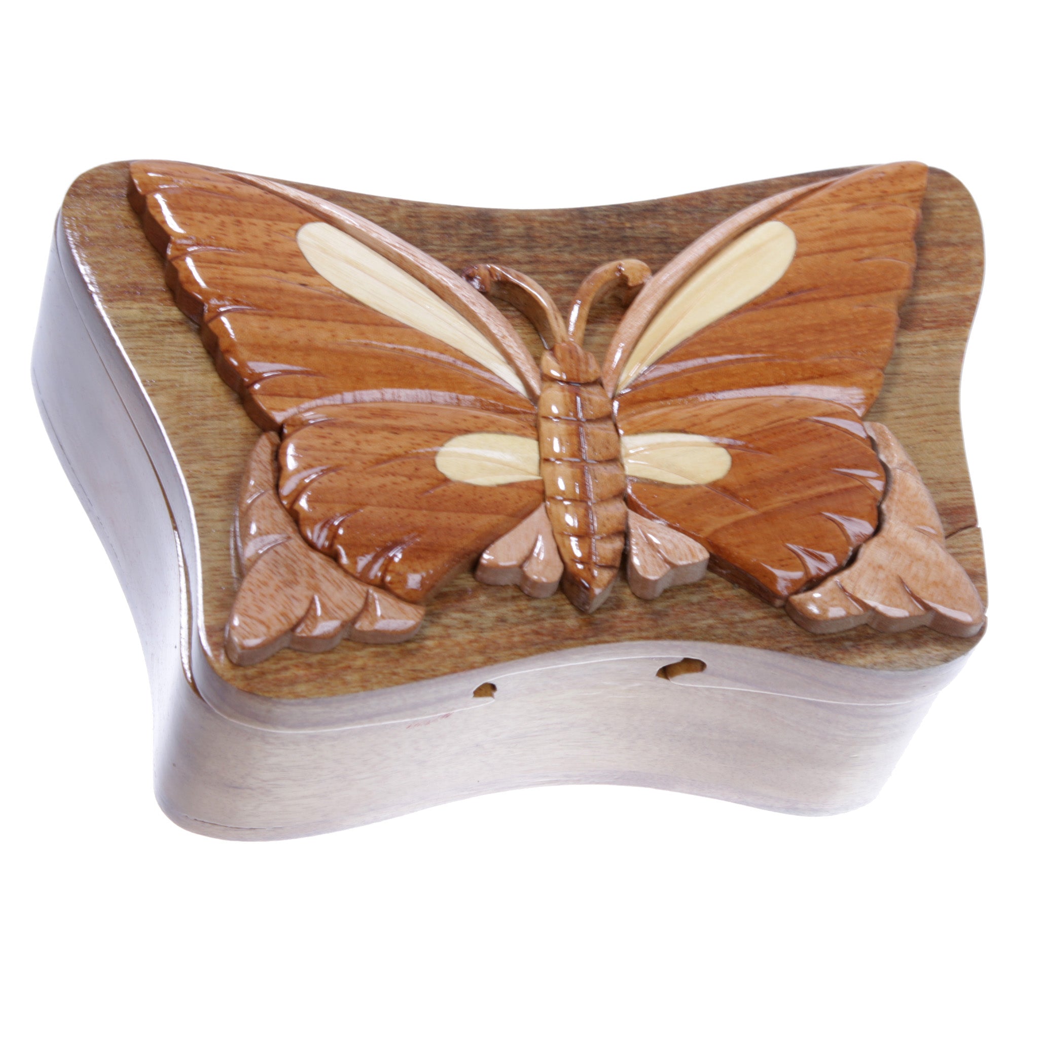 Butterfly Shape Handcrafted Wooden Secret Jewelry Puzzle Box - Butterfly