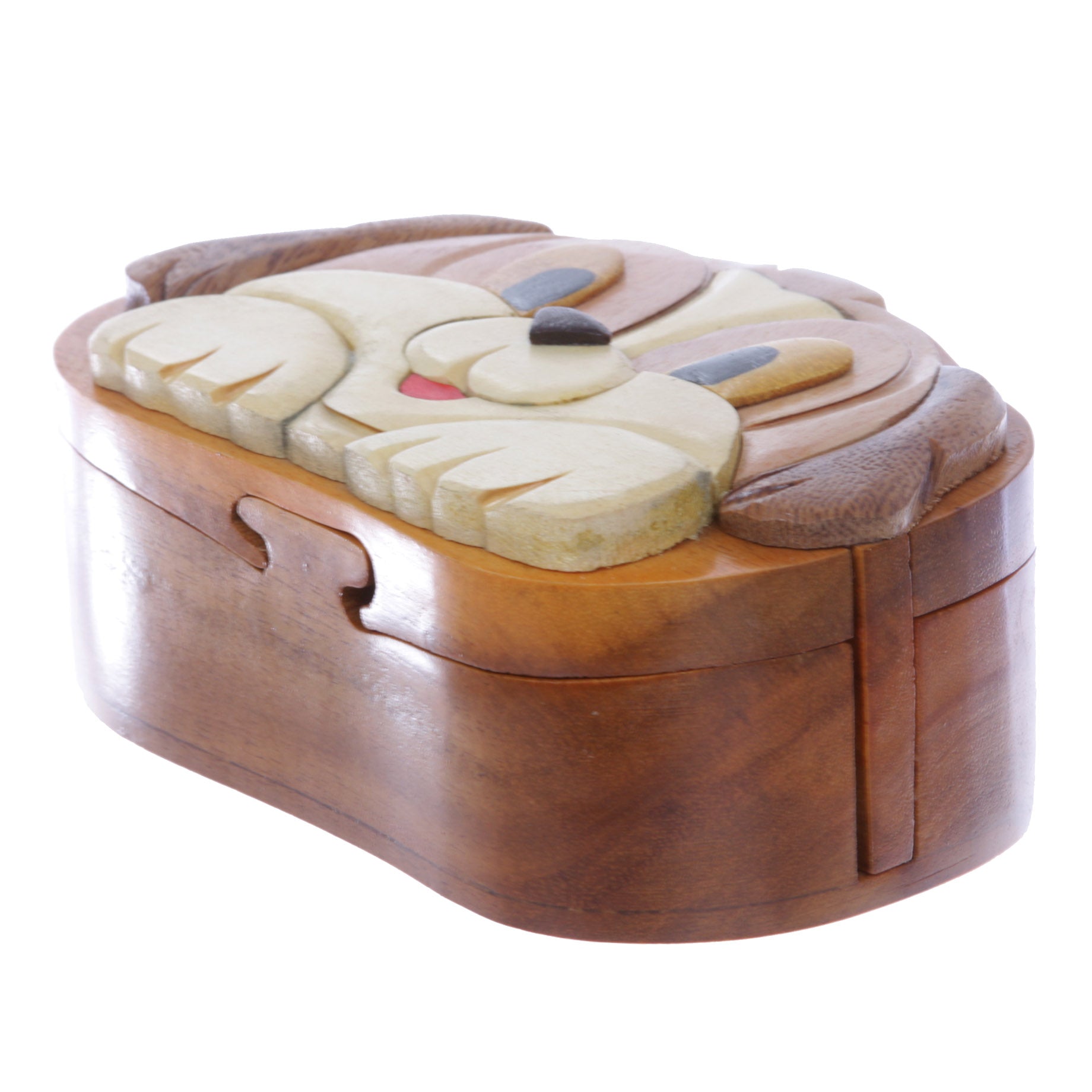 Handcrafted Wooden Dog/Puppy Shape Secret Jewelry Puzzle Box - Dog/Puppy
