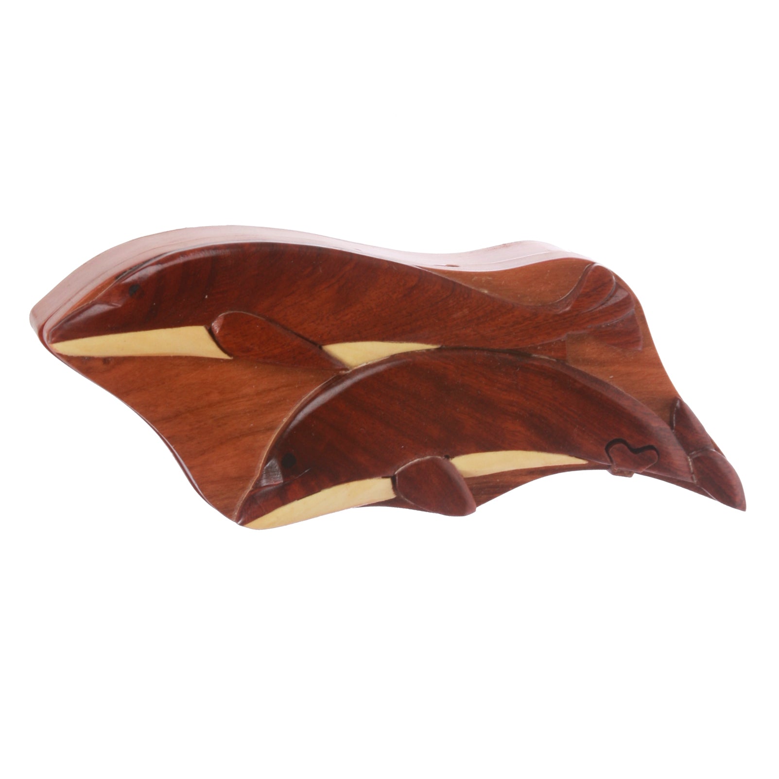 Handcrafted Wooden Two Dolphins Shape Secret Jewelry Puzzle Box - Dolphins