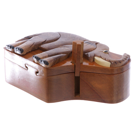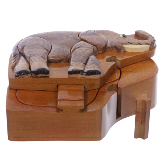 Handcrafted Wooden Elephant Shape Secret Jewelry Puzzle Box - Elephant