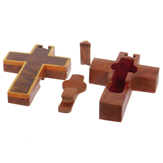 Handcrafted Wooden Cross Shape Secret Jewelry Puzzle Box