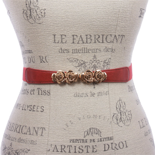 Women's 1" High Waist Rose Floral Fashion Skinny Stretch Belt