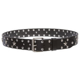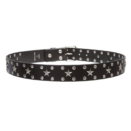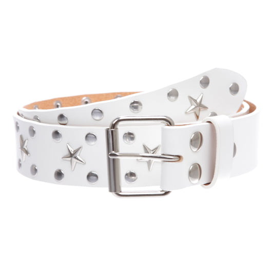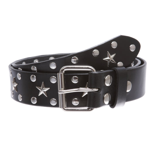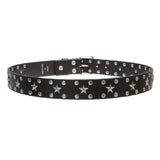 Snap On Silver Star and Circle Studded Cowhide Leather Belt
