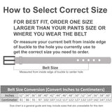 • [IMPORTANT] This belt size is NOT referring the full length or end to end, instead it is referring the measurement from inside edge of buckle to the center hole at tip end. Full length would be the size in the dropdown option plus 6 inches, e.g. belt size 32" full length 38".