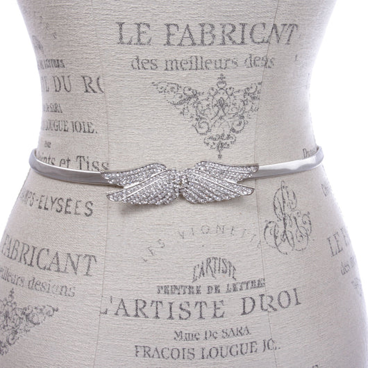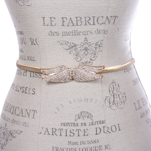 Women's Rhinestone Angel Wings Skinny Elastic Chain Punk Wedding Belt Piece Stretch Waistband