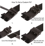 For an absolute great fit just follow these two simple steps: -- 1. To loosen belt from buckle- firmly push the belt forward inner way in buckle and closure will lift on its own. (No tools needed!) -- 2. Cut the belt to your desired size and secure it firmly with closure. You're no longer restricted to 1 inch size adjustments, but can get a perfect, superb, and custom-fit all the time!