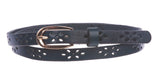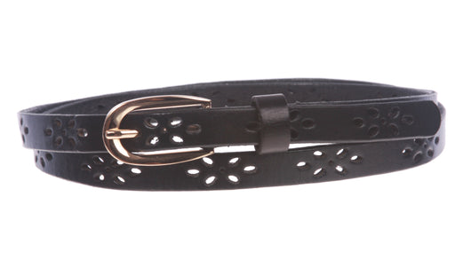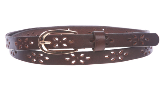Women's 1/2" (12mm) Skinny Perforated Floral Hollow Out One Piece Cowhide Full Grain Leather Belt