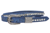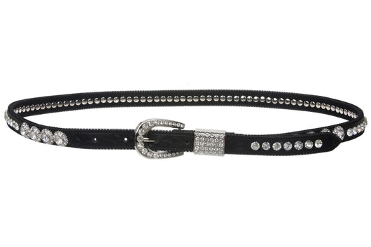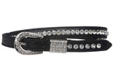 Womens 3/4" (20 mm) Western Cowgirl Rhinestone Studded Skinny Faux Ostrich Leather Belt