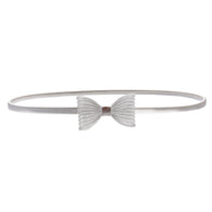 Women's Silver Metal Skinny Elastic Belt With Bow Tie Designed For Buckling