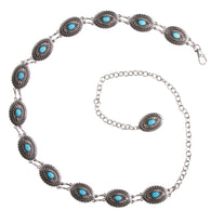 Women's Skinny Western Turquoise Stone Blue Concho Chain Belt - OnlineBelts Women's Skinny Western Turquoise Stone Blue Concho Chain Belt - OnlineBelts