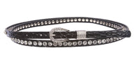 7/16" (12 mm) Skinny Rhinestone Croco Alligator Print Double Wrap Belt