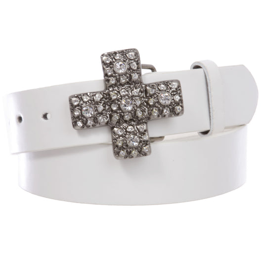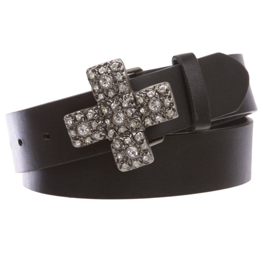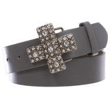 1 1/2" Snap On Cross Rhinestone Western Engraving Buckle With Leather Belt