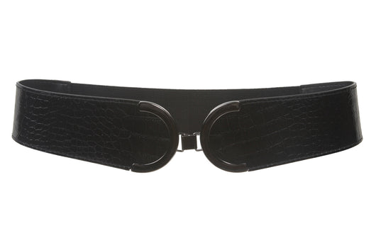 3" Wide High Waist Croco Fashion Stretch Belt With Metal Hook Buckle Size: One