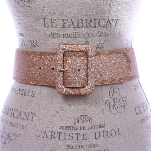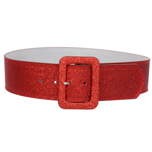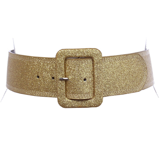 - This wide high waist belt is made of 50% leather and 50% man made glitter synthetic leather.