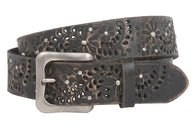 1 1/2" (38 mm) Snap on Flower Embossed Vintage Leather Oval Jean Belt