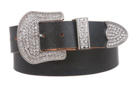Snap On Rhinestone and Gun Metal Color Circle Studded Leather Belt