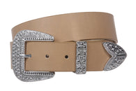 1 3/4" Snap On Three Row Punk Rock Star Metal Silver Studded Solid Leather Belt - OnlineBelts 1 3/4" Snap On Three Row Punk Rock Star Metal Silver Studded Solid Leather Belt - OnlineBelts