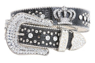 Western Rhinestone Cross Ornaments Croco Print Genuine Leather Belt