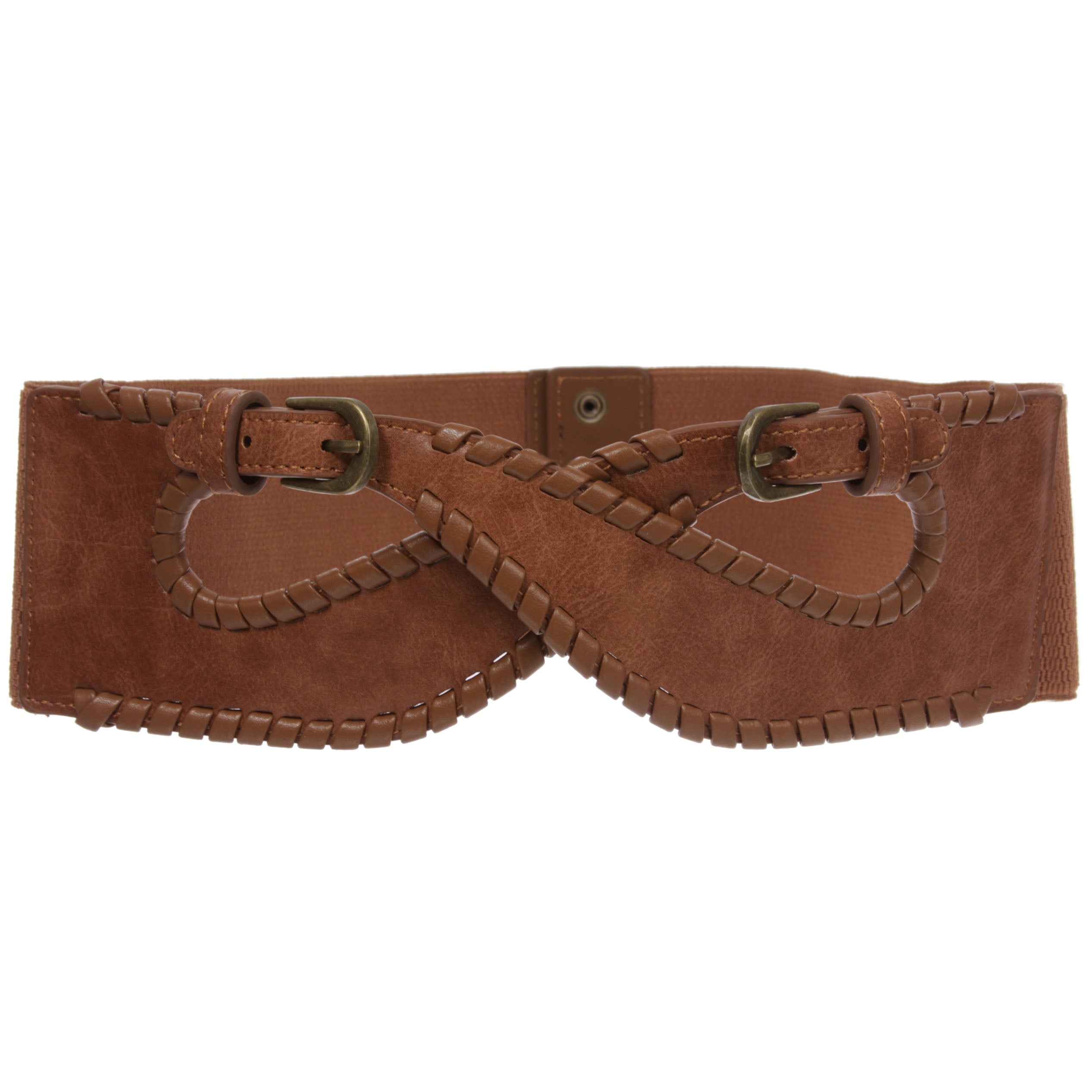 - Stretchy lace edged stylish folding crossed pattern belt made of quality synthetic material