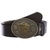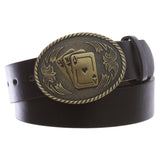 1 1/2" Snap On Oval Playing Card Magic Ace King Queen Western Engraving Buckle With Black Belt