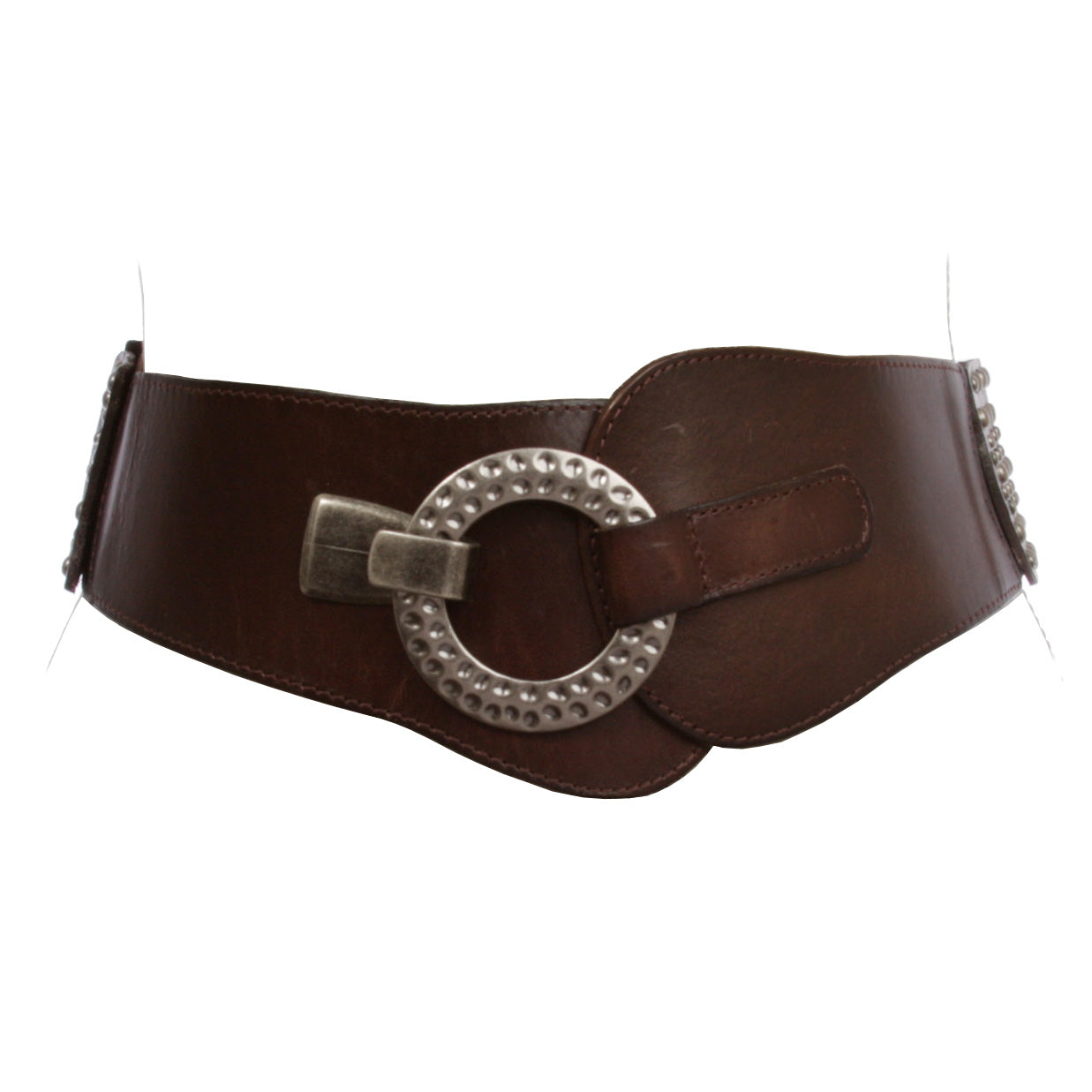 Women's 2 3/8" Wide High Waist Elastic Stretchy Studded Leather Hook Fashion Belt