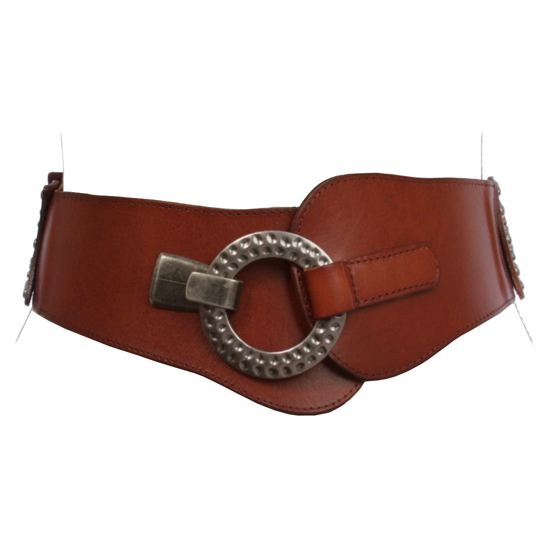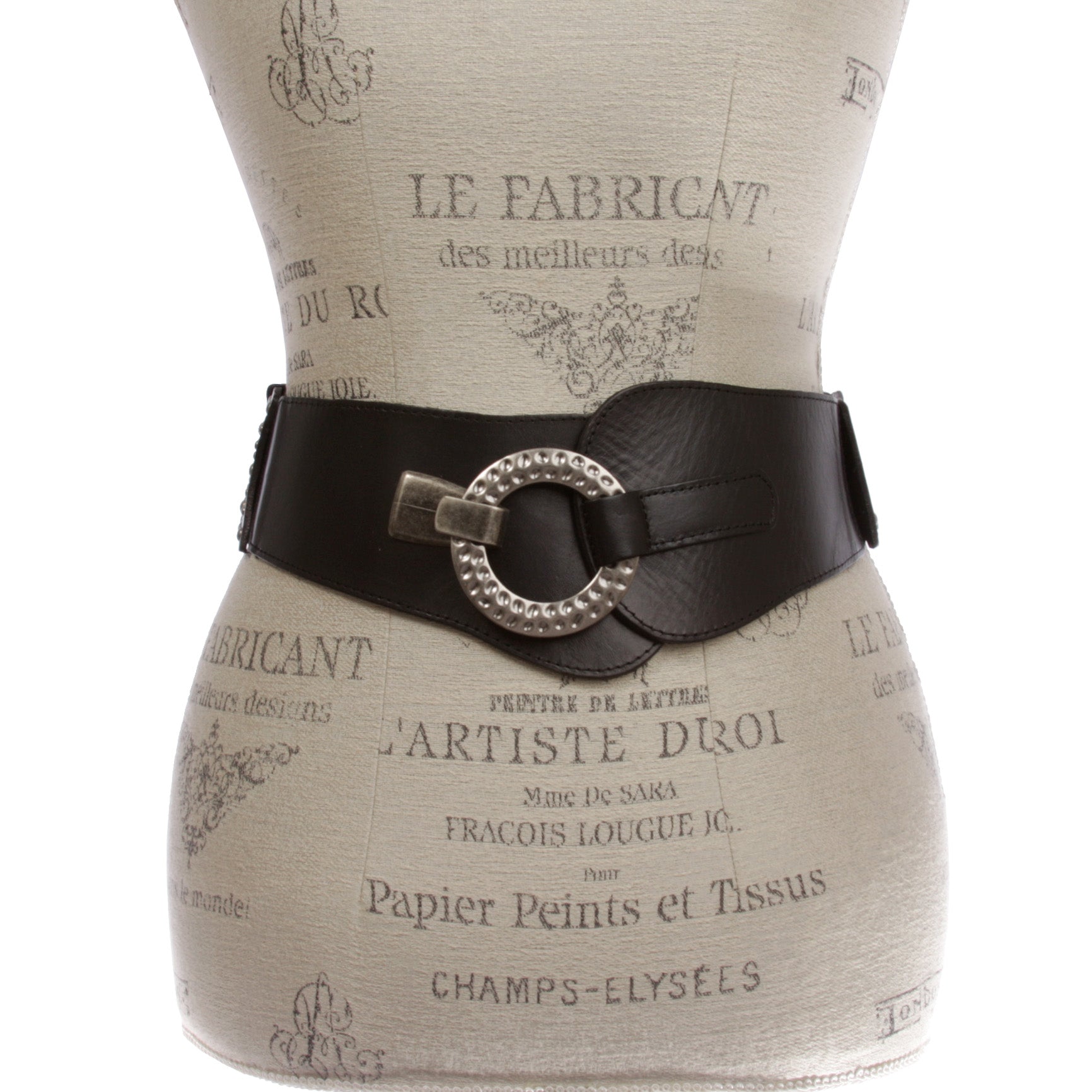 - High waist belt with antic silver hook buckle for closure