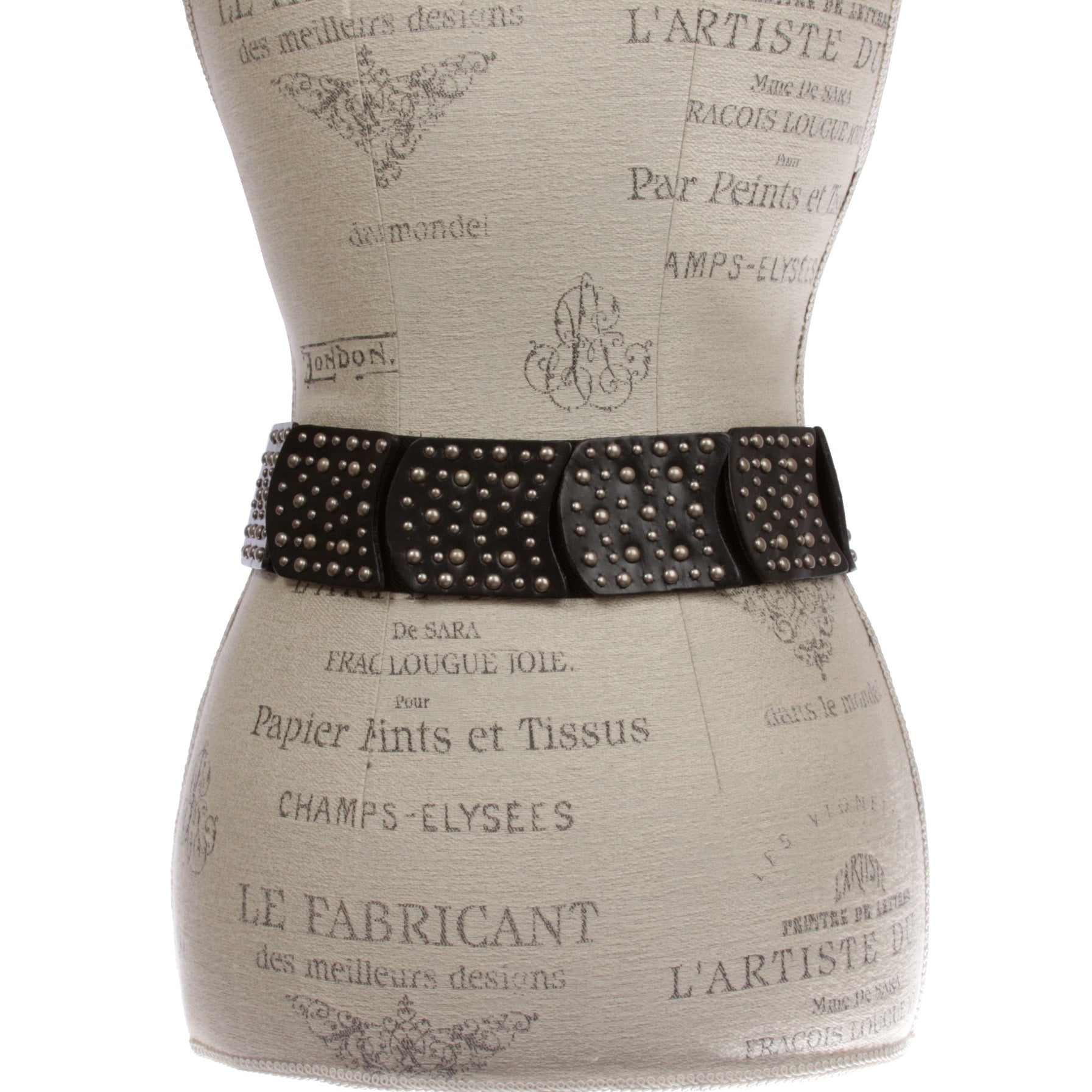 - Elastic band with leather sequent metal circle studs stitching on