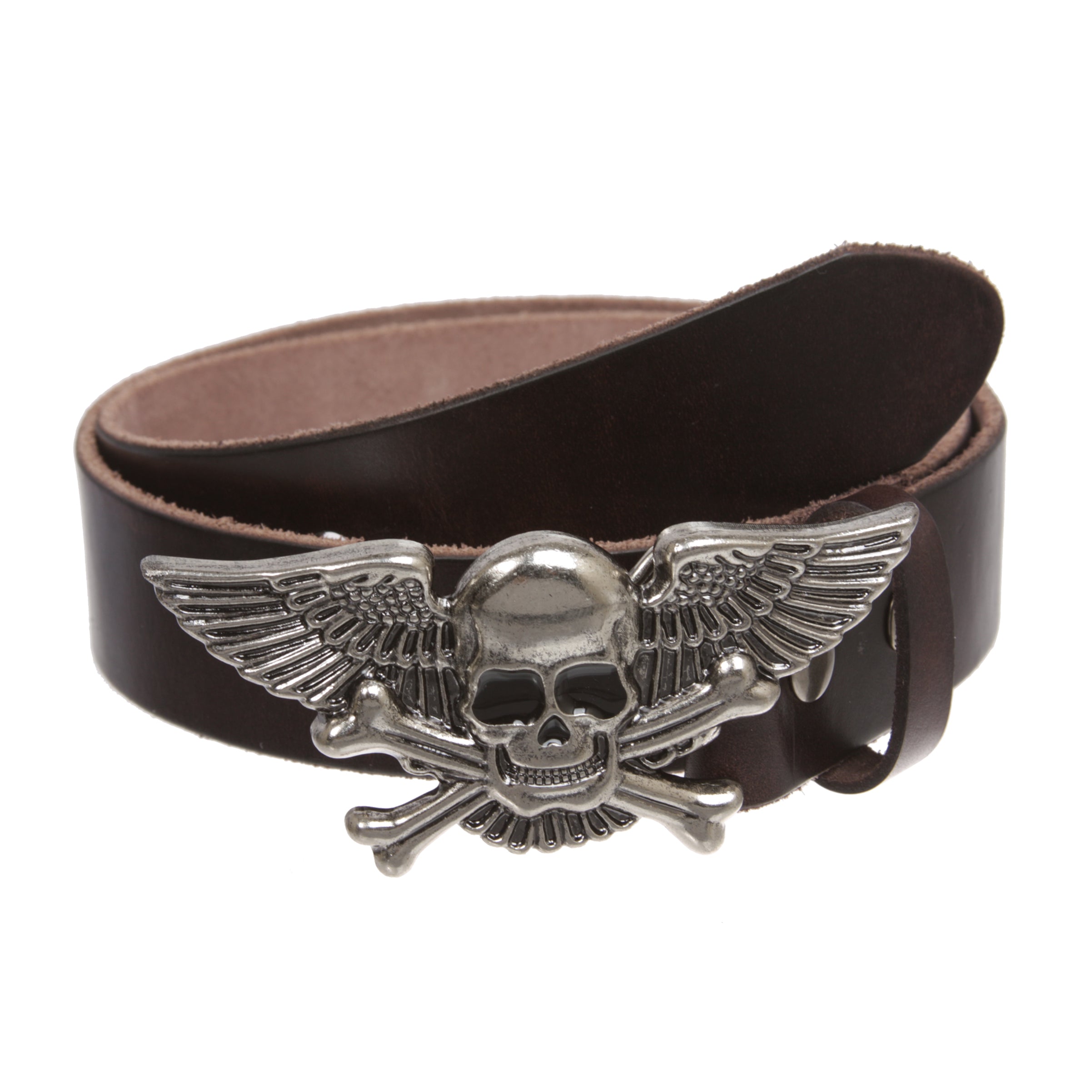 Winged Skull Zinc Alloy Belt Buckle on 1.5" Snap-On Leather Strap