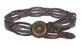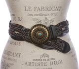 2" (50 mm) Genuine Leather Braided Woven Belt With Round Turquoise Stone Buckle