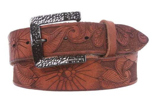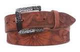 1 1/2" Snap On Soft Hand Floral Engraving Full Grain Leather Belt