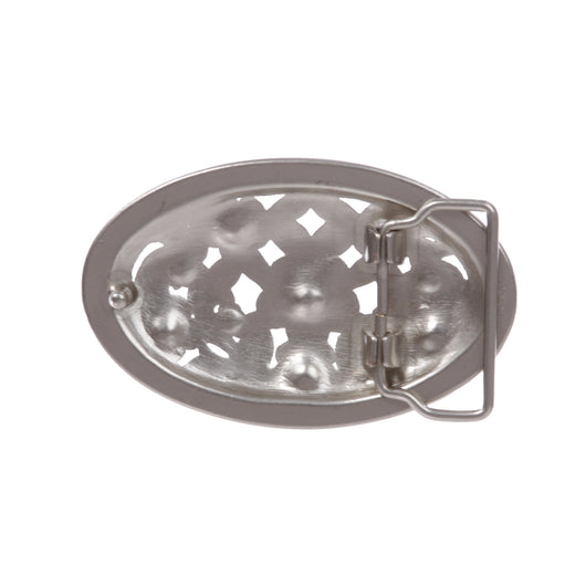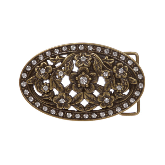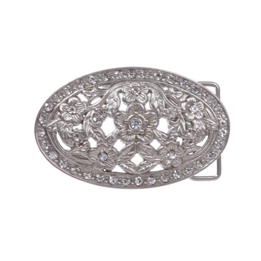 1 1/2" Antique Silver Brass Oval Perforated Engraved Crystal Rhinestone Western Floral Belt Buckle