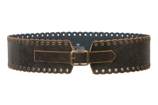 2 3/4" (70 mm) Wide High Waist Genuine Vintage Crack Print Distressed Soft Leather Belt