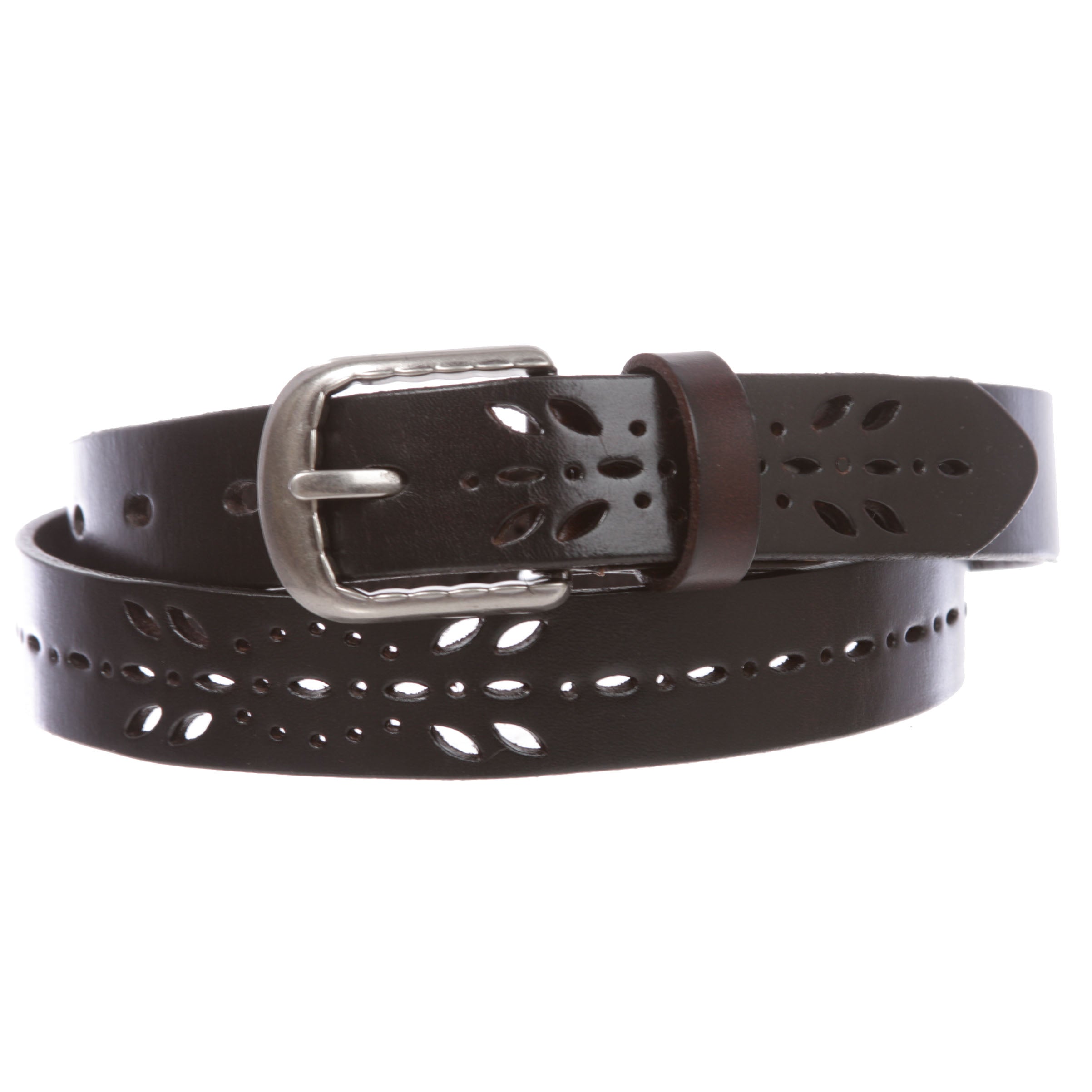 Women's 1 1/8" (28 mm) Perforated Cowhide Full Grain Leather Casual Jean Belt