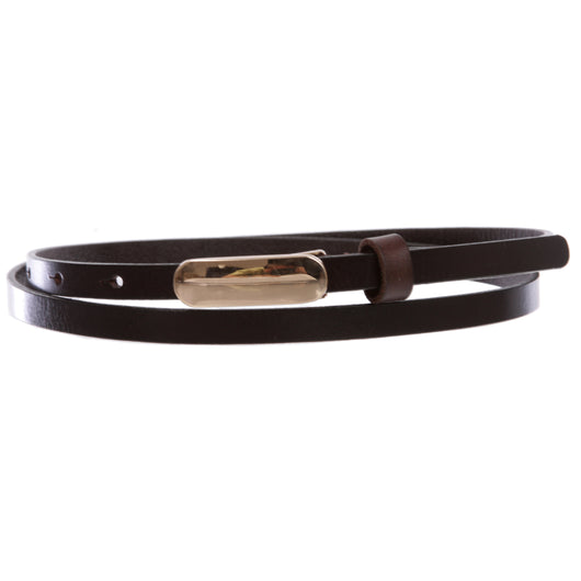 Women's 3/8" (10 mm) Skinny Plain Solid Real Leather Dress Belt
