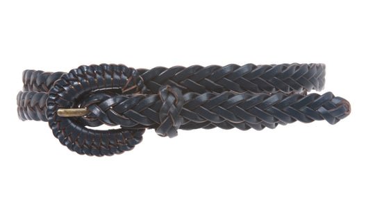 - Braided leather belt / Self-covered buckle with Antique Brass prong