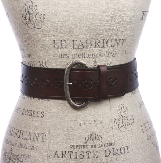 Ladies 2 1/4 Inch Wide Perforated Douglas Leather Belt