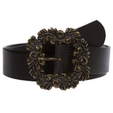 Women's 1 1/2" Wide High Waist Cow Leather Belt With Engraving Brass Buckle