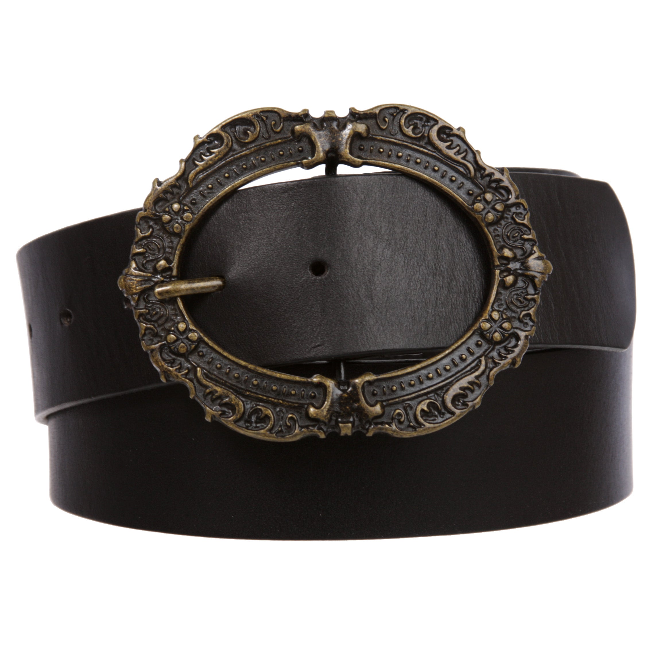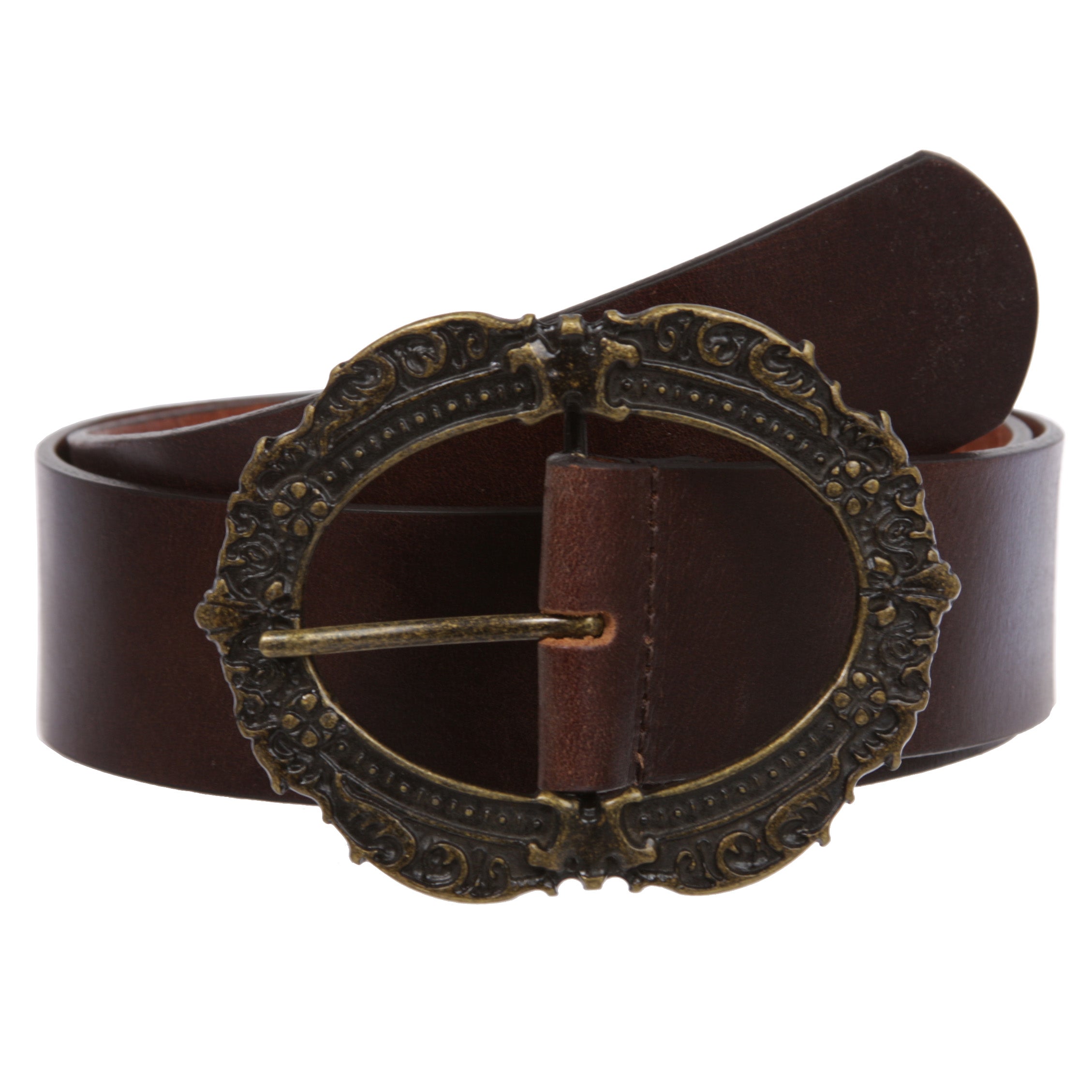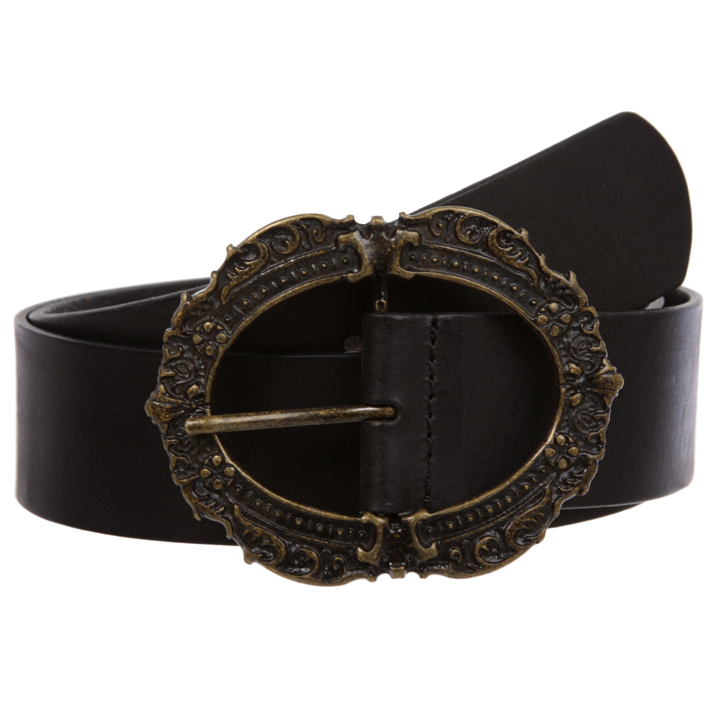 Women's 1 3/4" (45 mm) Wide High Waist Cow Leather Belt With Oval Engraving Brass Buckle