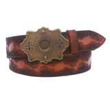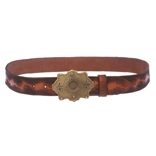 Snap On Floral Embossed Vintage Cowhide Full Grain Leather Belt