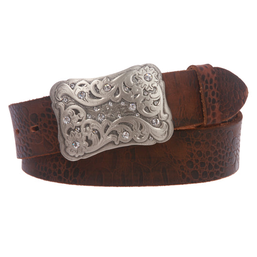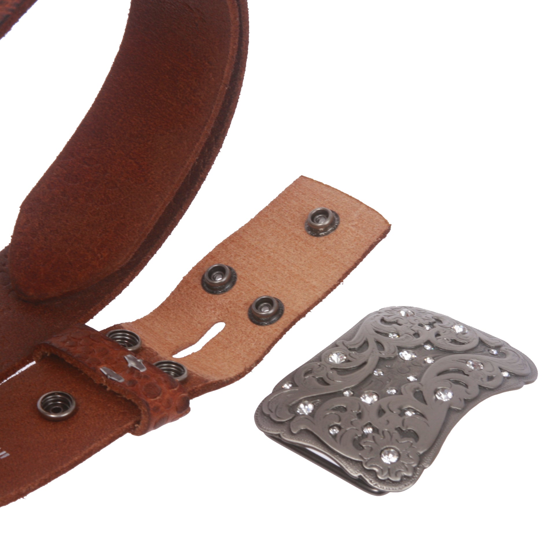 Snap On 1 1/2" Vintage Full Grain Leather Belt with Rhinestone Flower Buckle