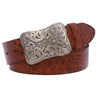 This Snap On 1 1/2" Vintage Full Grain Leather Belt is made of 100% solid Leather with Croco Print detailing. It is 1 1/2" wide with snap on enclosure for easily replacing belt buckles per your preference. Sizing: belt size is measured from buckle prong to center hole. There are total of total of five holes, 1" apart. It is recommended to measure where you will wear the belt, add 1-2", and then pick a size where this number falls or order one size larger than pants size